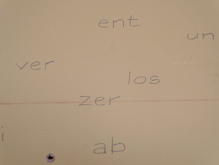 Grundlegend für meine Aktionen ist die intensive Beschäftigung mit der Wirkung von Sprache und dem geschriebenen Wort. Mit kurzen Sätzen, Fragen, Wortfeldern und entwendeten Wörtern will ich die positi ven Aspekte von Leere und Leerstand umkreisen.